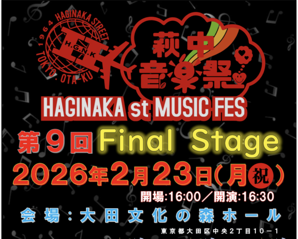ホーム > トピックス > 萩中音楽祭 2月23日 Final Stage 萩中音楽祭 2月23日 Final Stage 2026/2/21 いよいよ2月23日に萩中音楽祭が開催されます! 大田文化の森ホールにぜひ見に来てください!